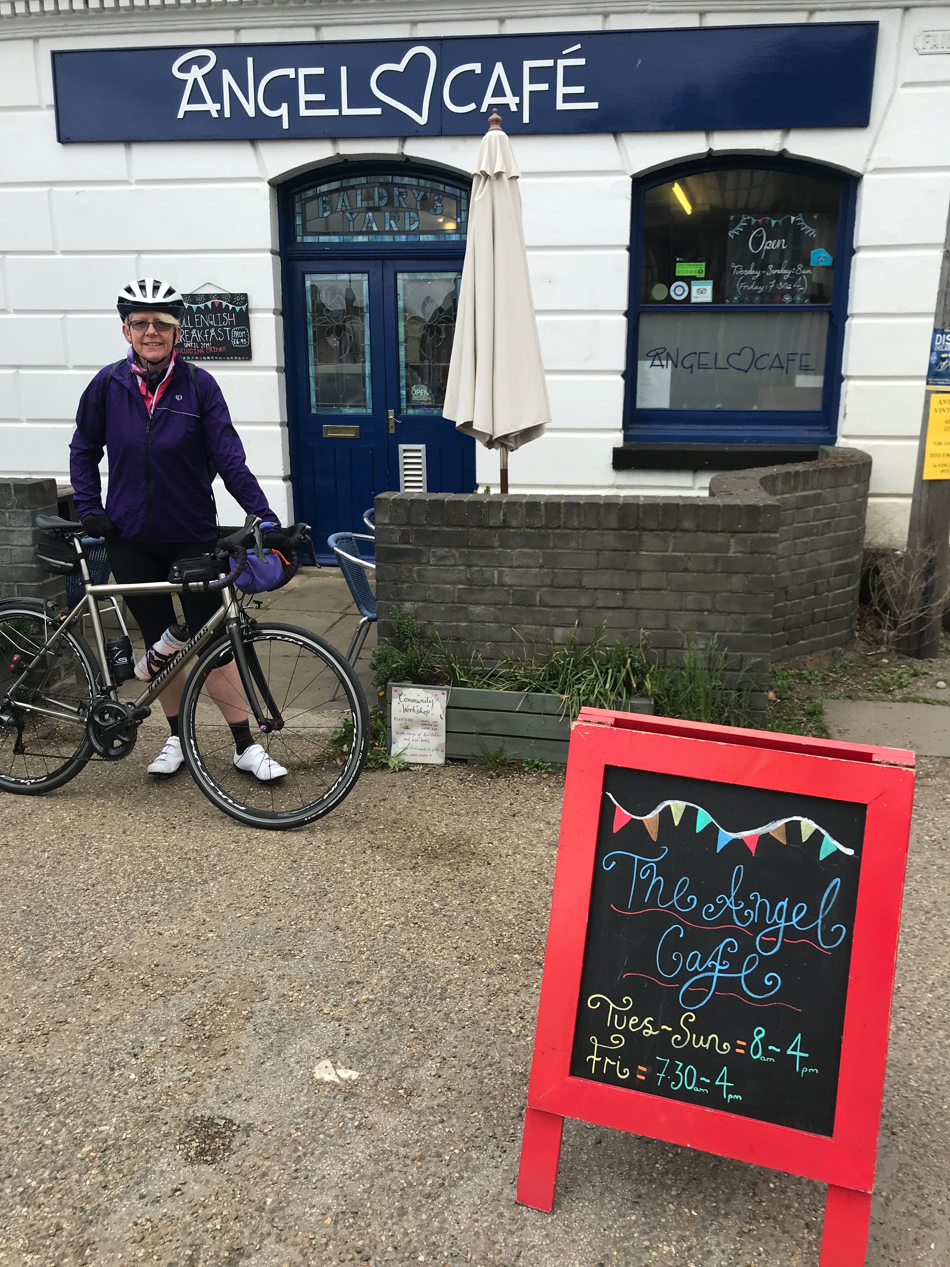 Just outside Diss after just over 50 miles we found the Angel cafe where we stopped for Eggs and Toast, by the time we left we had warmed up and was eager to get on our way, as we came into Diss I remember thinking the church looked quite spectacular.